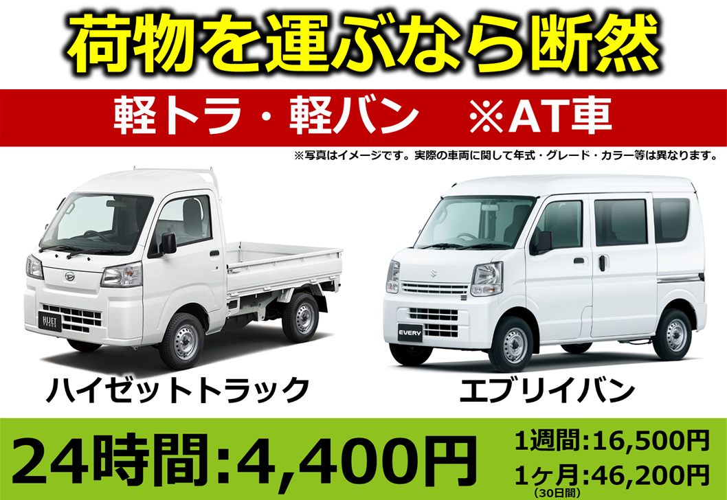 *車両保有台数が各1台の為、お客様のご希望に添えない事も多くご不便をおかけしますが何卒ご理解の程よろしくお願いいたします。ネットからご予約できない際は一度お電話にてお問合せ下さい。